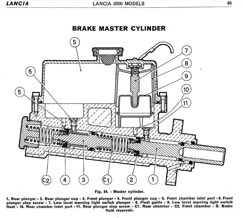 De hoofdremcilinder van de 2e serie Fulvia wijkt af van alle andere hoofdremcilinders. Hij wijkt zelfs af van de hoofdremcilinder zoals die getekend is in het Concise Workshop Manual voor de 2e serie Fulvia. Het terugloopgaatje voor de 2e drukkamer ontbreekt.