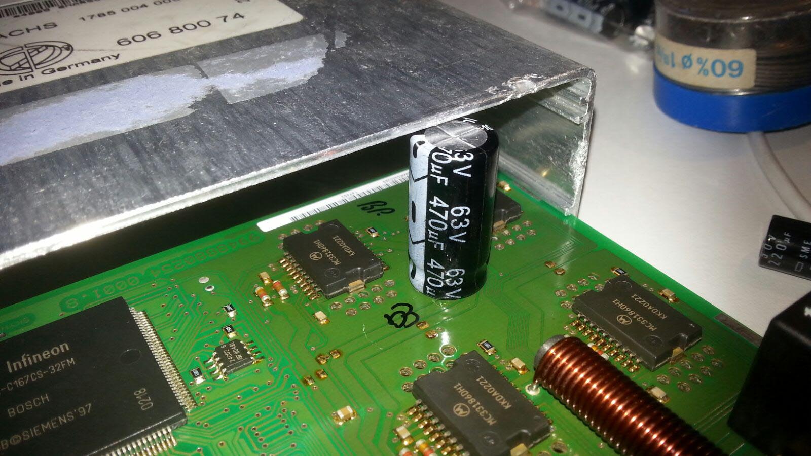 Ik heb me ook gewaagd aan de vervanging van de condensatoren (2 elco’s) in de Skyhook ECU, omdat ik regelmatig een keiharde vering had (heb??).