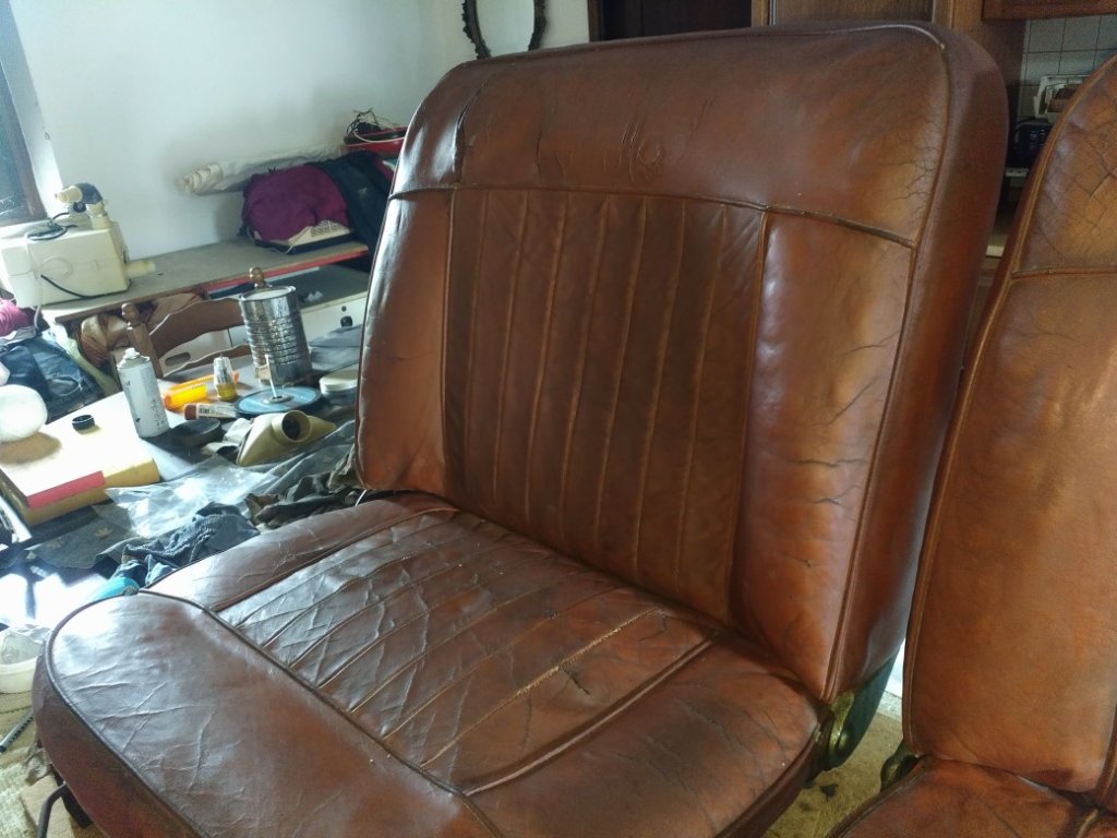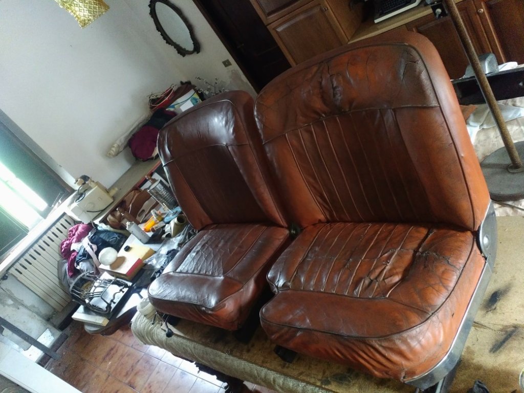 Restauro conservativo... Circa due anni fa', ancora prima di iniziare la carrozzeria avevo fatto un po' di lavoro sui sedili, senza pretese, sapendo che nelle condizioni in cui erano non potevo fare danni, sarebbero stati da rifare.
