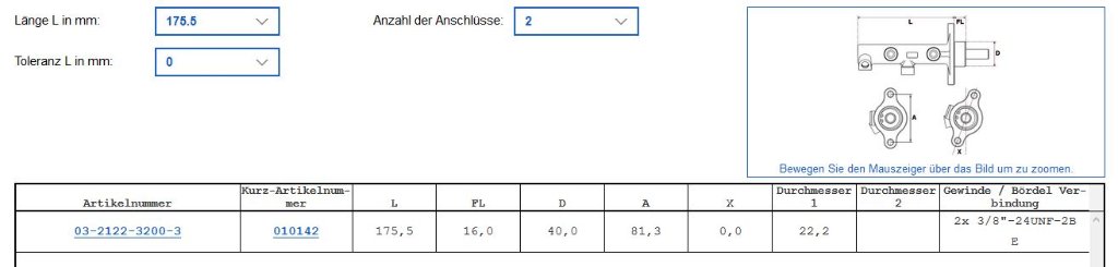 Es handelt sich vermutlich um den ATE Typ 03.2122-3200.3, denn Länge und Optik stimmen bis auf die Flanschstellung, Lochabstand (und Farbe) [s. Anhang 1+2] genau überein.
