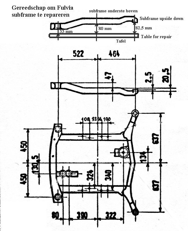 I found the drawing I made to construct a table for repairing a sub frame. The table was much in such a way that the sub frame can be clamped onto it the right way up or upside down.