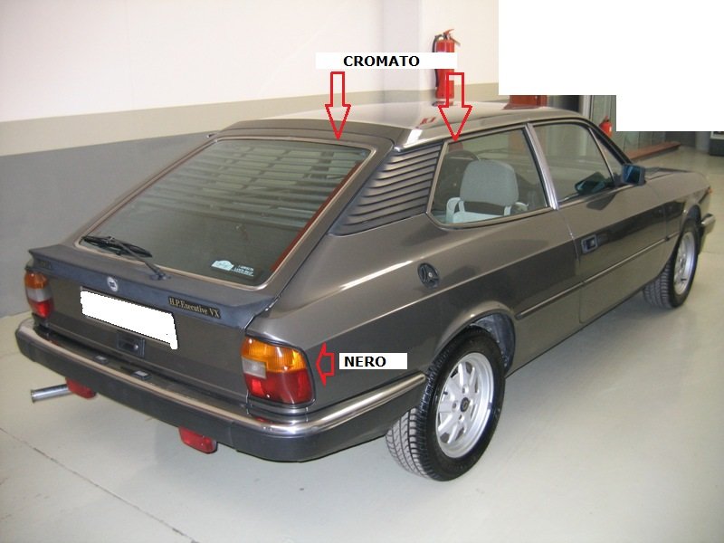 Buongiorno Enzo, le Beta H.P. Executive 4° serie 1981-84 (come le coupè), hanno tutte le cornici vetri e fari posteriori in nero opaco, così come le maniglie porte e la calandra anteriore (solo la cornice esterna cromata). Le stranezze che si vedono in giro fanno parte delle macedonie che fanno chi ripara o restaura l'auto.