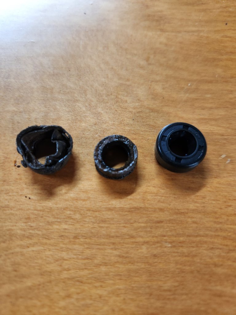 After a few hundred kms no oil leaks visible: I replaced the two front seals and the sideshaft seals, as well as all the gaskets. I put some sealer on the surface inside the half shafts where the nut seats. Also replaced the small oil seal inside the speedo drive - see attached - that has clearly never been replaced!