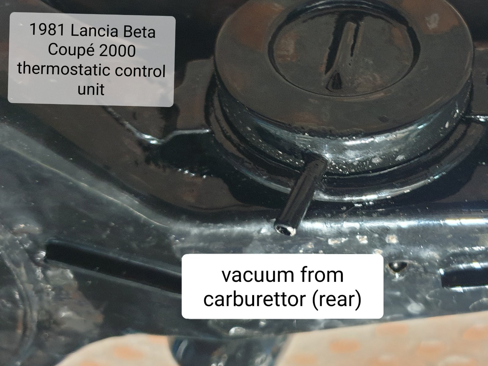 Reply to the previous post. No and yes. My 1981 Lancia Beta Coupé 2000 (from the Belgium market) comes with a Bosch electronic ignition system and the distributor has no vacuum advance capsule. Consistently the installed and original Weber 34 DAT 2/250 carburator has no "ported" vacuum to the distributor. And yes, in this specific carburator the rear port is a "ported" vacuum that could or should connect to one of the two small pipes on the bottom of the air filter assembly (see third picture), that are part of a red thermovalve marked "AC", for italian brand Auto Clima. And from there another connection should go to the thermostatic control unit. This is how it should be, no more no less, in my specific car with this specific carburator. It so happens that in my car the AC valve is not functioning anymore. So I decided to bypass it and i didn't explain this contingency in the picture but i do it now. Well, this is for my car, and sometimes I have more doubts than certainties. But one thing is sure. There are a lot of carburater variants and the devil is on the detail.