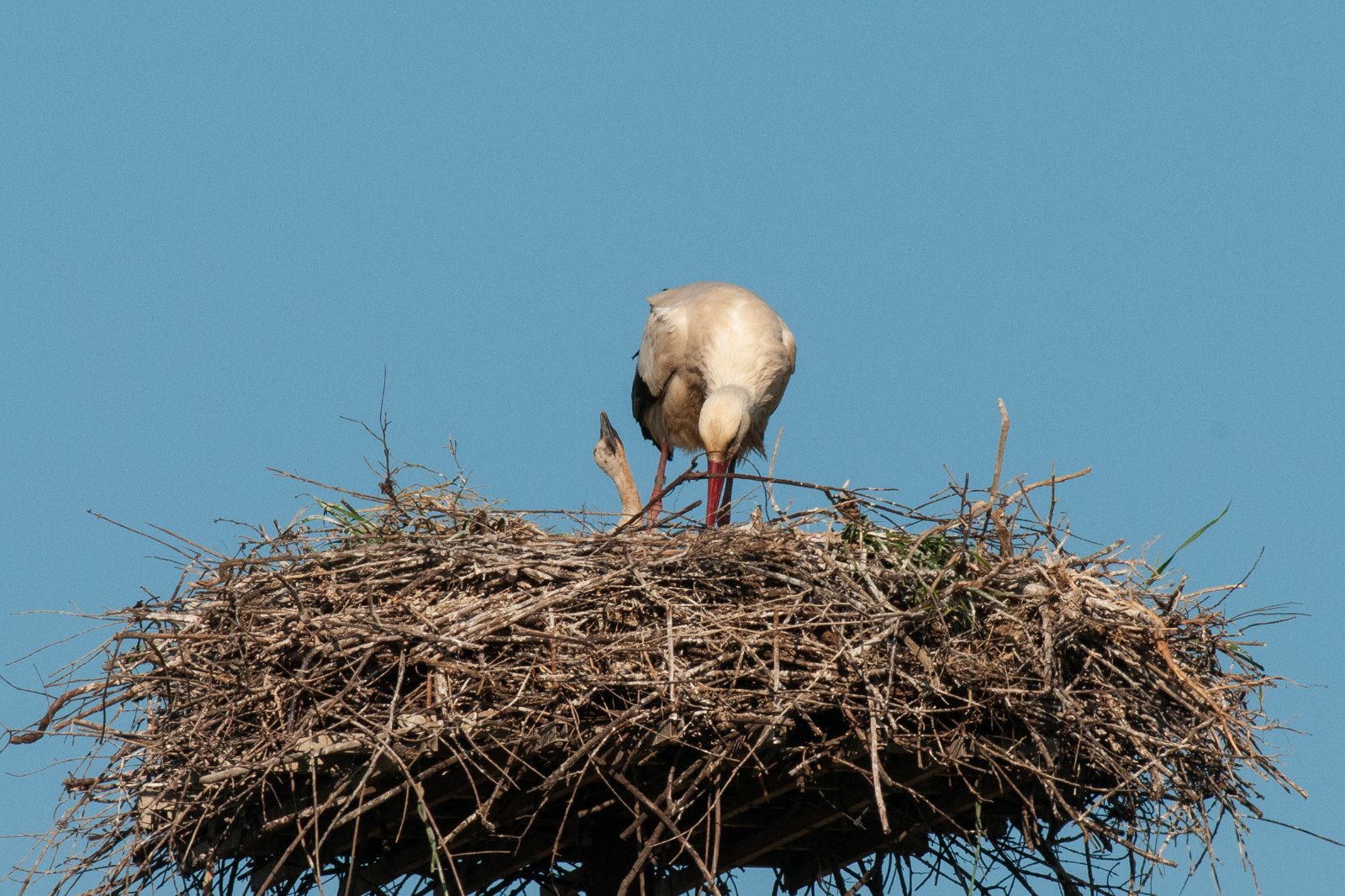 Stamani ponte, quindi ho fatto un altro passaggio veloce ad importunare le cicogne: uno dei piccoli era particolarmente intraprendente...