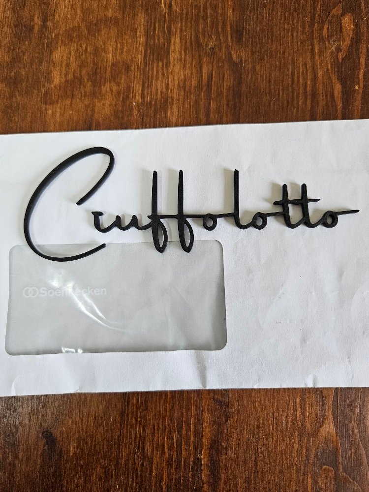 Da das Thesis Signet aber nach oben hin abgerundet ist, musste das Modell am oberen Teil nun gefast bzw. abgerundet werden. Ausgehend vom Layout vom freistehendem T im Wort Thesis, musste das C im Ciuffolotto auch freistehend werden. Dies war beim Schreiben des Fonts nicht darstellbar. Also sollte später das C getrennt gedruckt werden. :geek:
