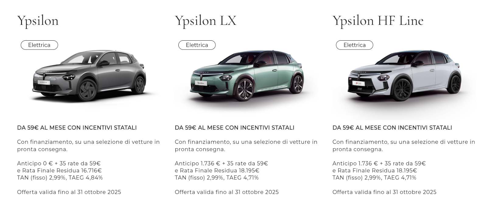 La nuova Lancia Ypsilon Electric è disponibile con incentivi statali a partire da 59 euro al mese
