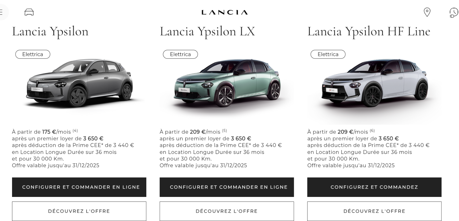 Lancia France propose des offres attractives sur l'Ypsilon hybride et l'Ypsilon électrique.