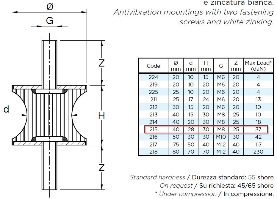 E' necessario montare il tassello antivibrante particolare 1 visibile anche in foto. Purtroppo al momento non ti sò specificare le misure esatte.