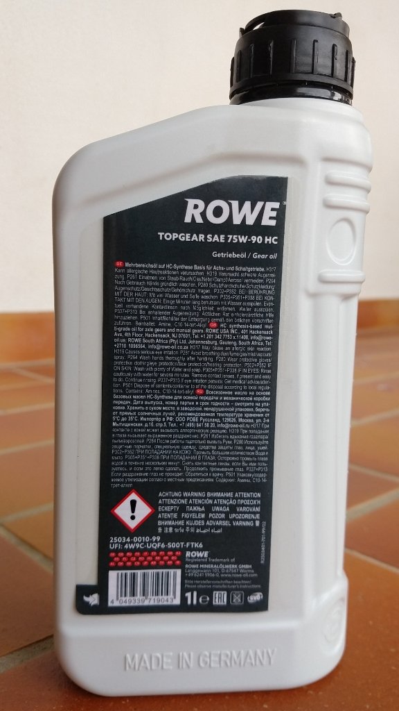 Oltre allo Shell Spirax S5 ATE 75w90 di cui si è parlato (testato da un altro utente) e al Motul Gear 300 75w90 (ottimo sulla carta ma non testato da utenti del forum) si aggiunge il Rowe Topgear HC 75w90 che sto testando da qualche mese.