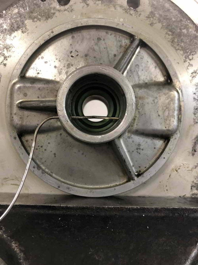 Wie man hoffentlich erkennen kann ist in der Aufnahmebohrung für den Wellendichtring seitlich eine Überlaufbohrung.