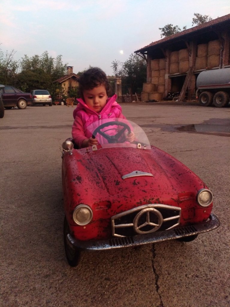 caro Giovanni, la Mercedes di tua figlia è una splendida Giordani anni '50 che, cambiando la mascherina, poteva trasformarsi in varie marche diverse.
