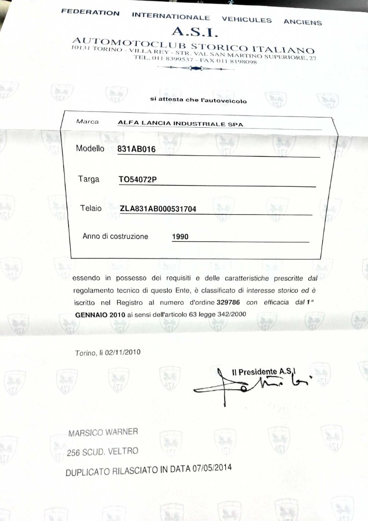 Grazie per le delucidazioni,onestamente non so il precedente propietario che pratiche avesse fatto pagava cmq il bollo ridotto anche quelli successivi che pagai in tabaccheria risultava auto storica nel terminale ,quando feci la voltura chiesero solo il tesserino ASI plastificato che mi consegno' assieme alla vettura poi io per farlo fare a nome mio mi ero tesserato e mi spedirono quello che vedete in foto dicendomi a posto cosi'.Provero' a sentire in motorizzazione sperando di trovare qualcuno gentile,ero un po' scettico sul fatto che si potesse circolare grazie per la conferma in effetti questo e' utile.