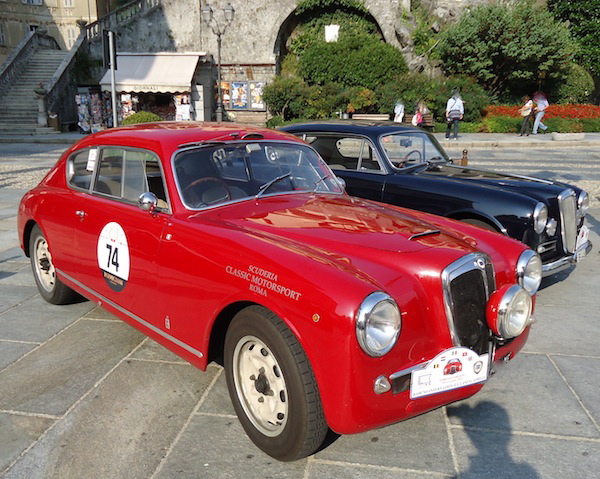 Nella foto le Aurelia a Fobello e il logo della famiglia Lancia