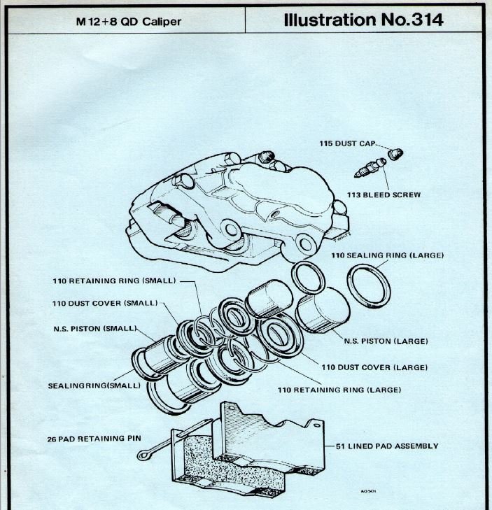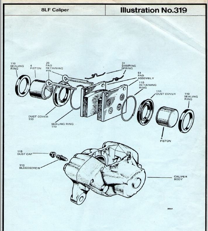 Zur allgemeinen Information sei gesagt, daß es sich bei den vorderen Fulvia Girling Sätteln um den Typ " M12+8QD" und bei den hinteren um "8LF" handelt (s. Anhang), der M16 ist dem hinteren höchstens optisch ähnlich, aber eben nicht gleich...