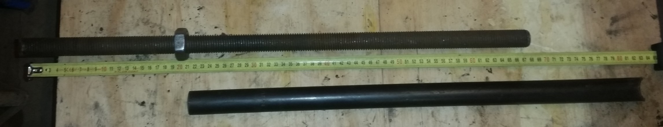 Wij gebruiken een stevige stalen buis met daarin een M24 draadeind met moer. Zie foto in bijlage.