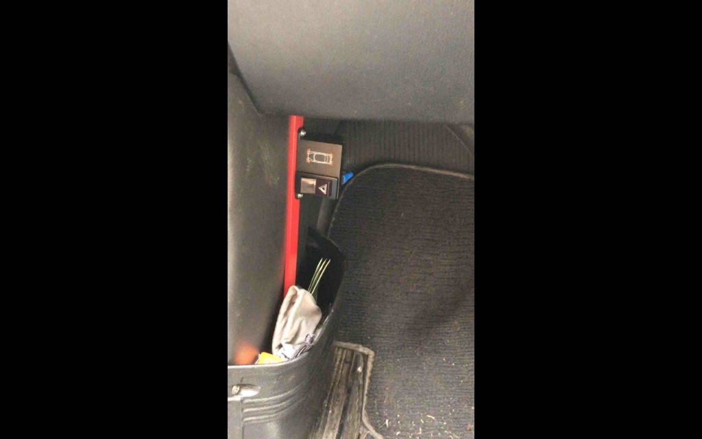 Den Schalter habe ich auf eine Kunststoffleiste geschraubt und diese über ein vorhandenes Loch in der Verkleidung unten links befestigt (Klemmlösung wäre auch möglich gewesen).
