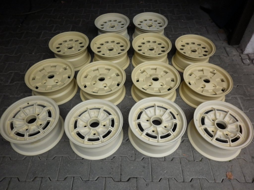 Felgen sind gestrahlt und mit EP-Primer grundiert. Müssen also noch lackiert werden.