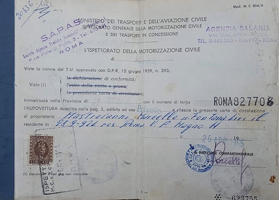 Grazie Giovanni! Pensa che una trentina d'anni fa (forse anche più) la vidi in vendita da un dealer di auto d'epoca sull'Olimpica a Roma. Chiedeva 10 milioni; una bella sommetta anche al tempo, che comunque non avevo. Peccato: mi sarebbe piaciuto avere un'auto appartenuta a Marcello Mastroianni, il nostro attore più affascinante e simpatico, persona molto amabile anche nella vita.