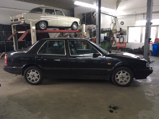 ich habe es nocheinmal getan und habe einen Thema 16V Turbo in absolut rostfreien und unfallfreien Zustand ergattern können. Natürlich konnte ich nicht widerstehen. Bj 1991, also kommendes Jahr H-Kennzeichen, schwarz met., Klimaautomatik und Schiebedach. Das Fahrzeug ist 7 Jahre gestanden. Nach einer kompletten Reparatur (Zahnriemen, Bremsen, alle Filter und Flüssigkeiten, Ventile einstellen, usw.) gab es einen frischen TÜV. Danach der sebstverständliche Umbau der Innenausstattung mit Leder, elektrischen Sitzen mit Memory, vernünftiges Radio, Lederlenkrad aus einen 8.32, usw. Ein Satz Borbet F70530 hatte ich auch noch, die kommen dann in Sommer drauf.
