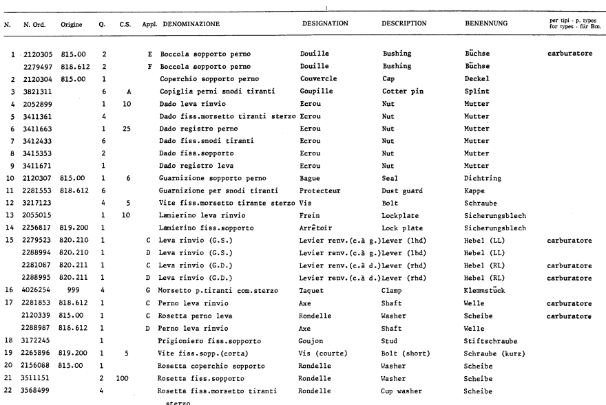 . la piece qui me manque est la "boccola sopporto perno" N°1 sur le schéma et ref 2279497 et il m'en faut 2 par coté dispo ici https://www.lanciavintage.net/it/2128-sterzo, mais pet etre y a t il un peu moins cher ailleurs