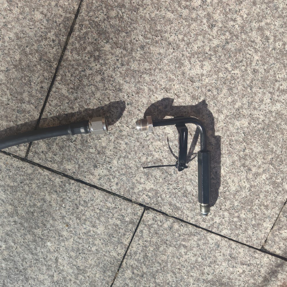 * das flexible Rohr auf das Metallrohr geschraubt, bevor es entlang der Schürze geschoben wurde, und dann das Auge auf das Lenkgetriebe geschraubt?