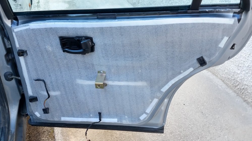 Per prima cosa ho tagliato la parte dove c'è la maniglia di apertura, quindi l'ho bloccato sotto la maniglia stessa. Poi ho bloccato altri punti e ritagliato il resto. Per togliere i supportini di plastica nera dove poi si avvita il pannello (ce n'è 3 nella porta posteriore e 1 in quella anteriore) va tolto il grano che c'è all'interno semplicemente spingendolo (quindi poi va recuperato all'interno della porta).