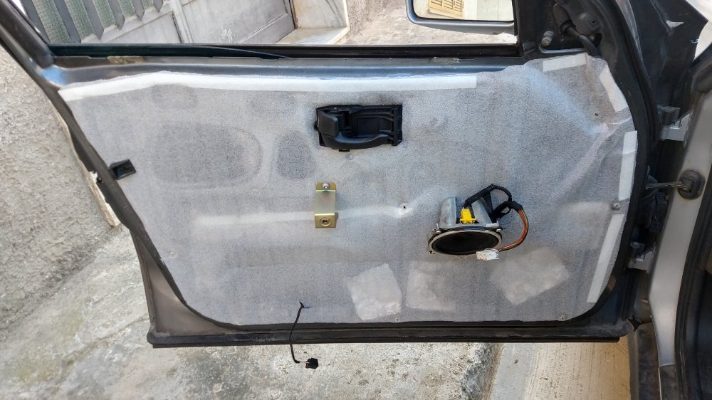Per prima cosa ho tagliato la parte dove c'è la maniglia di apertura, quindi l'ho bloccato sotto la maniglia stessa. Poi ho bloccato altri punti e ritagliato il resto. Per togliere i supportini di plastica nera dove poi si avvita il pannello (ce n'è 3 nella porta posteriore e 1 in quella anteriore) va tolto il grano che c'è all'interno semplicemente spingendolo (quindi poi va recuperato all'interno della porta).