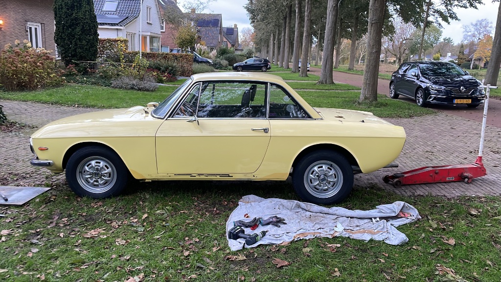 De velgen zijn van een Fulvia Berlina 2e serie 14" met wieldoppen, eerste serie velgen zijn 13"