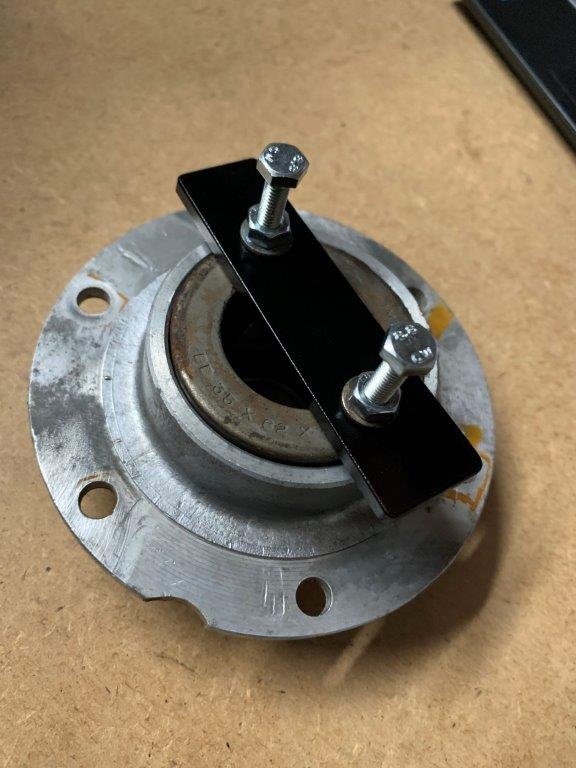 Put something through one of the M8 holes in the flange and lock it against one of the M8 studs to keep the flange in place when torquing the nut.