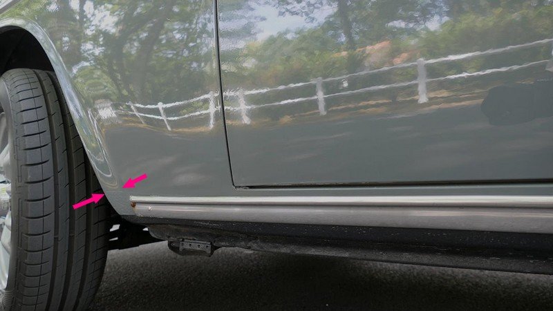 Coté conducteur, le profil de rebord est nettement plus protubérant que du coté passager, à l'endroit où il rejoint le bas de caisse