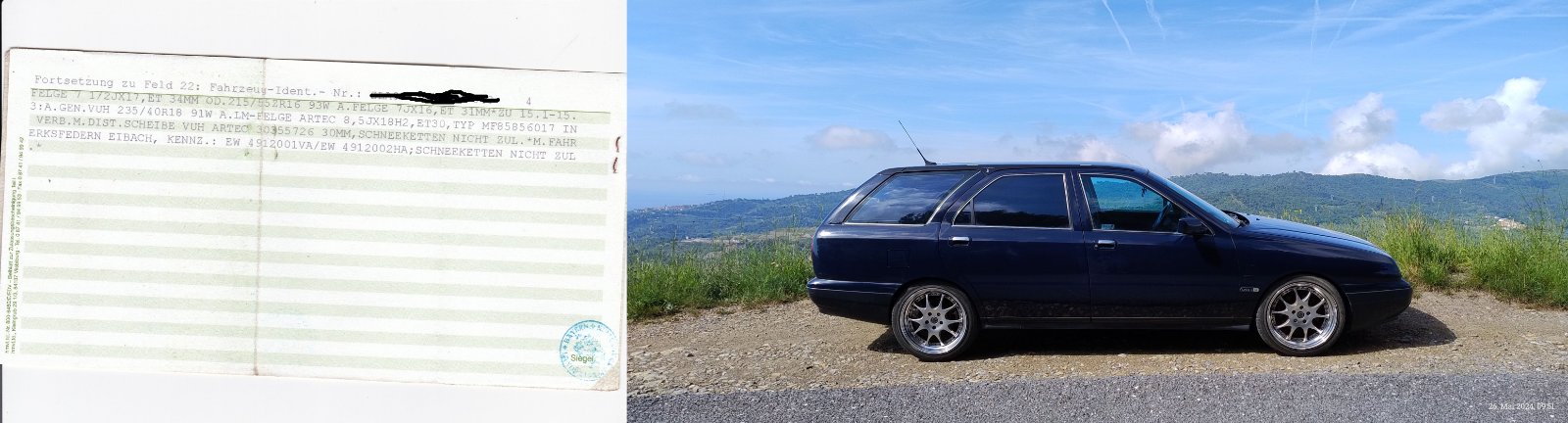 ich suche ein Felgen TÜV Gutachten für den Lancia Kappa in der Größe 8,5x18 et 35.