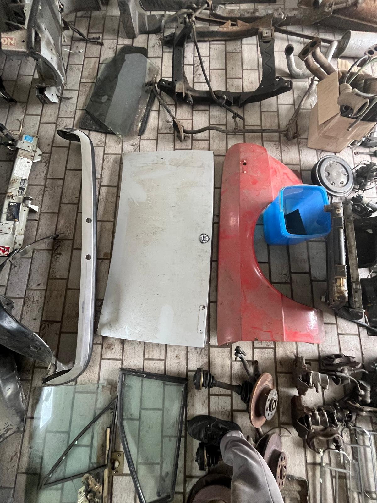 Viele seltene Teile wie z. B. kompl. Servolenkung vom 2000er Coupe, kompl. Kabelbaum 1300, Seitenteile li u. rechts, Kofferraumhaube hi., Kotflügel, . kompl. Glas, alle schwarze Zierleisten , u.a. eigentlich alles, kompl. Motor 1300 (lauffähig ausgebaut), Fahrschemel, super seltene Innenraumteile usw..