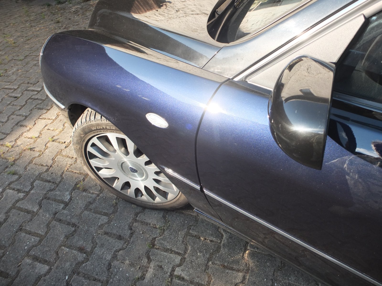 Ich hab es riskiert und eine zweite Farbe in nachtblau lackieren lassen. Ich habe die Motorhaube, Dach und Kofferraumdeckel nicht mit lackiert (waren ja schon schwarz) sondern nur die Seitenteile bis zur Kante Nahe der Seitenscheibe in blau metallic...