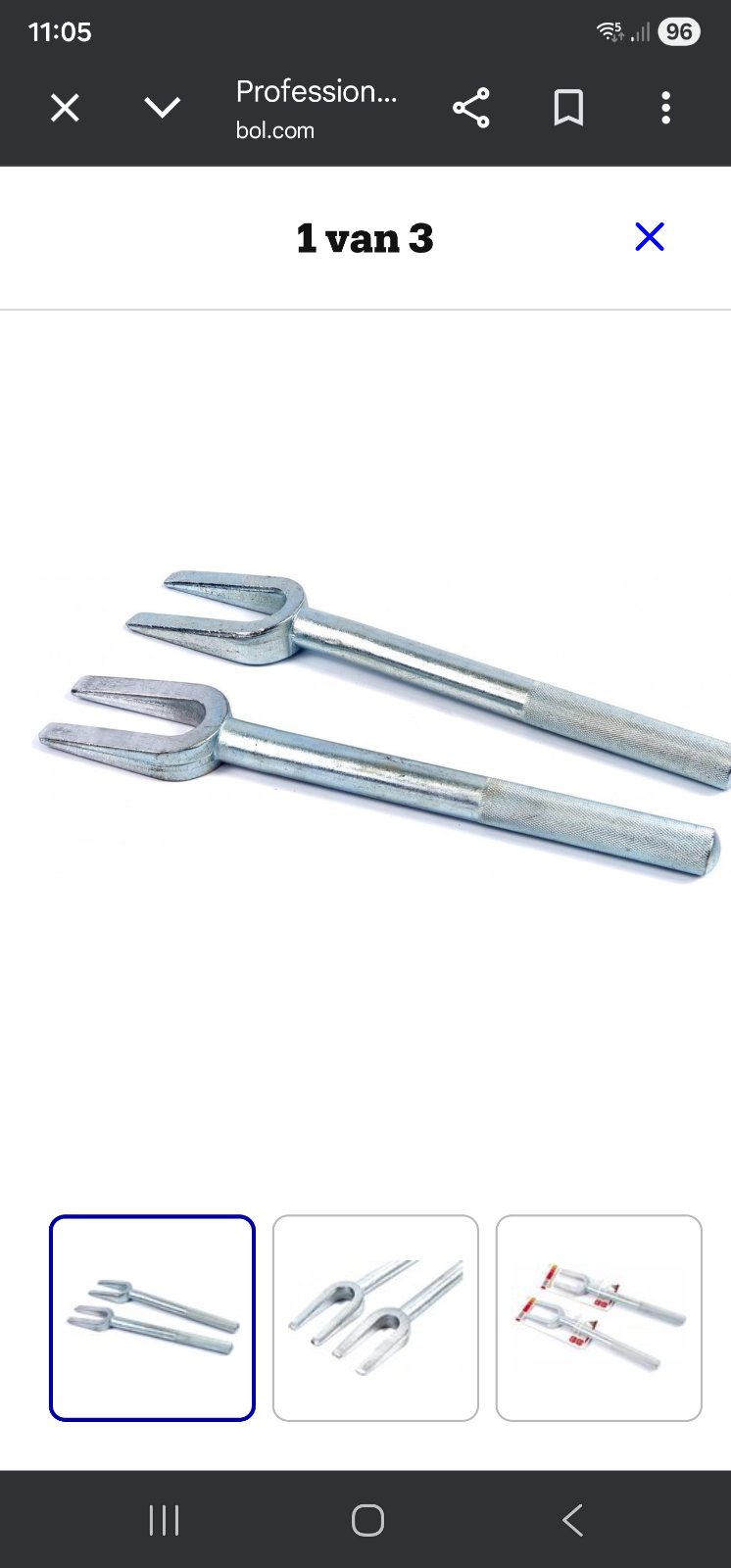 Put an axle stand under the spring. Lower the car until lower wishbone has moved. Undo nut. Use ball joint tool to loosen ball joint from swivel. I use a fork like on picture and a big hammer.