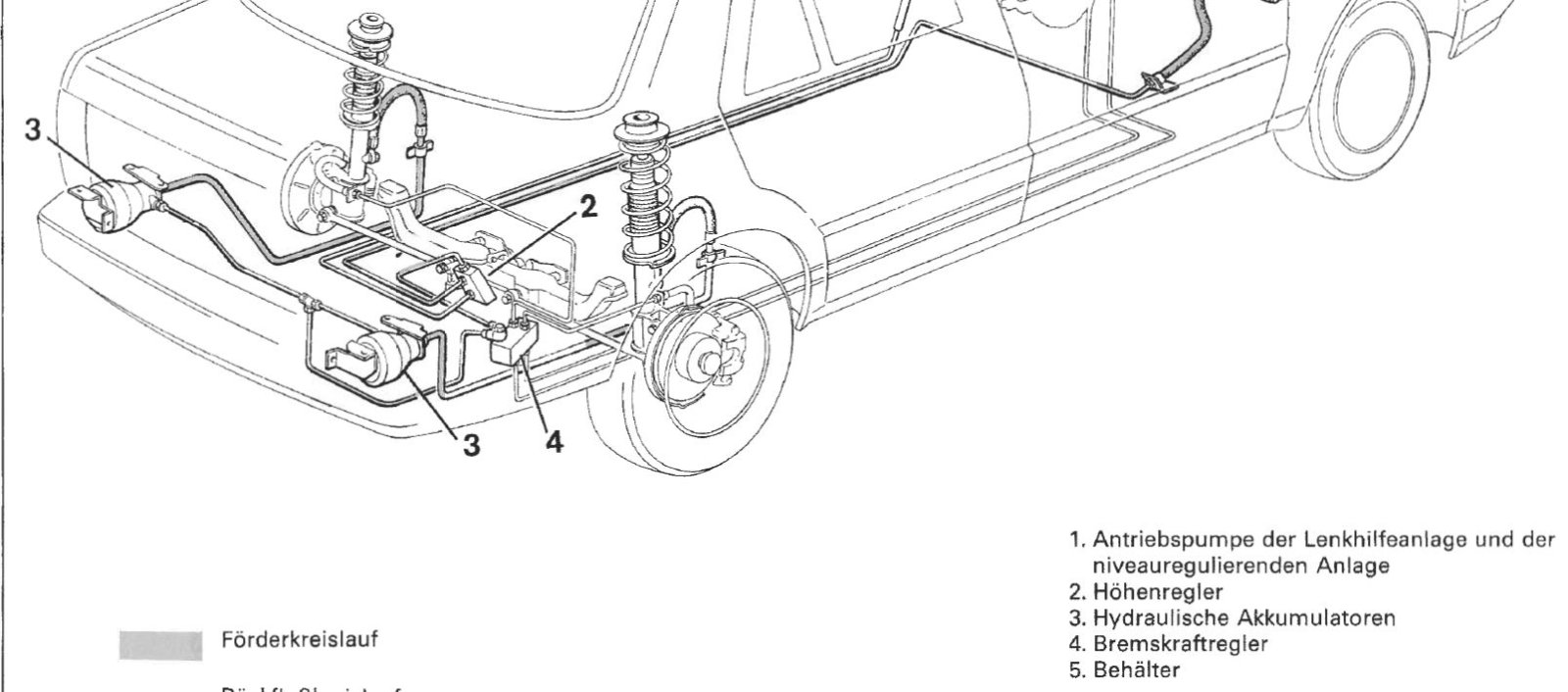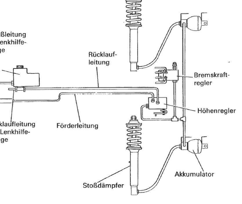 Guten Morgen, der Thema LX ist mit einer Niveauregulierung ausgestattet. Das Bauteil in der Mitte ist der Höhenversteller. Der Bremskraftregler befindet sich rechts am Fahrzeug, in der Nähe des hinteren Stoßfängers. Die Bremskraft ist gewichtsabhängig und passt sich der Belastung durch den Höhenversteller an.